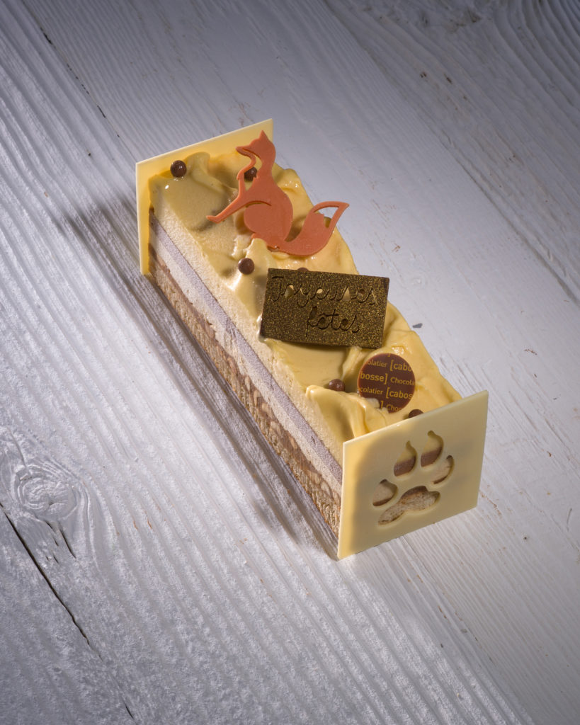 Biscuit, croustillant et glace onctueuse tout cacahuète, sorbet chocolat lacté Jivara intense et sorbet passion-banane.