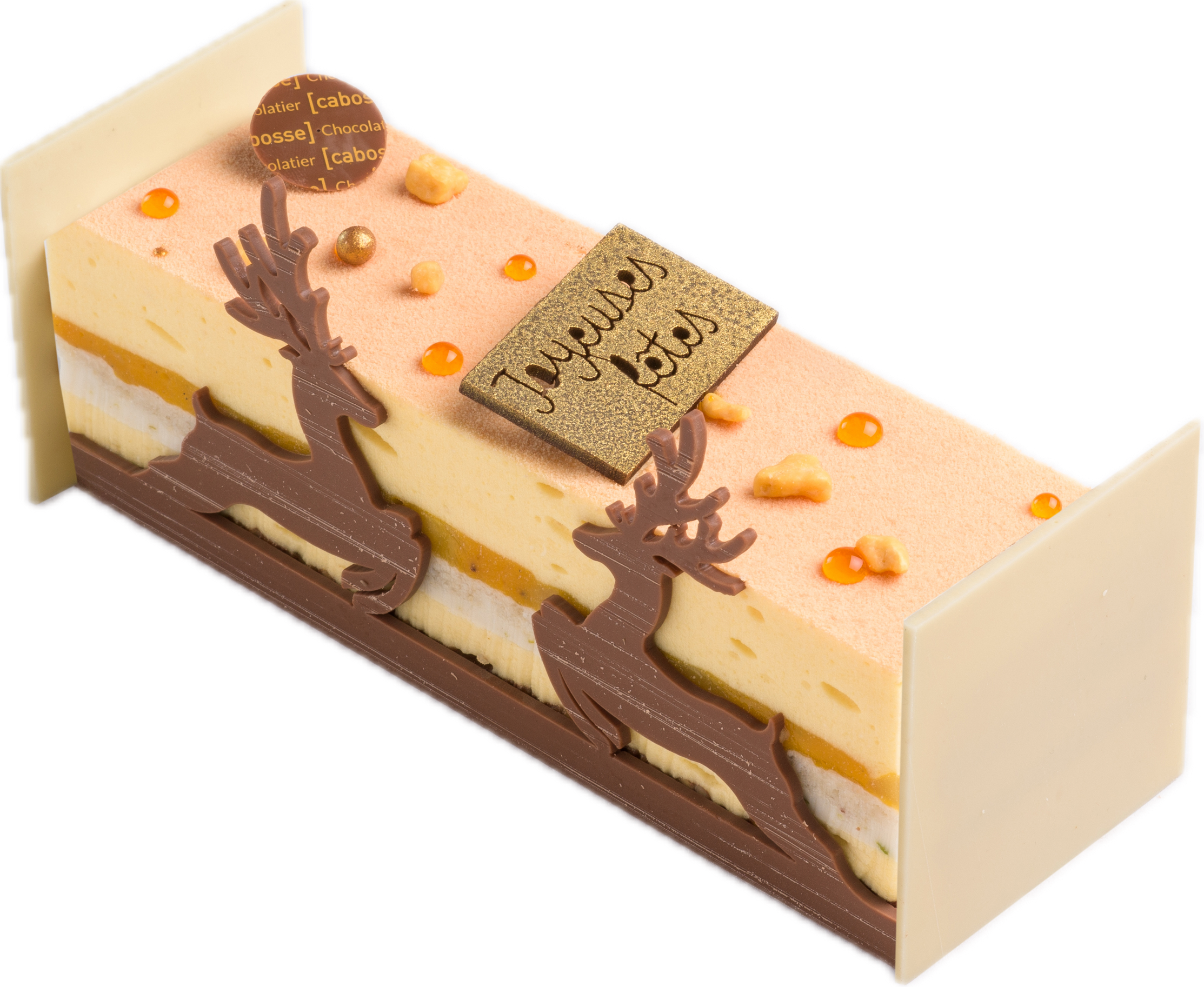 Biscuit moelleux à l’amande, croquant aux amandes grillées, mousse plein fruit coco-passion, crémeux citron vert et compotée de mangues.